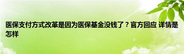 【医保支付方式改革是因为医保基金没钱了?官方回应】大家可以一起来了解一下这是什么情况!