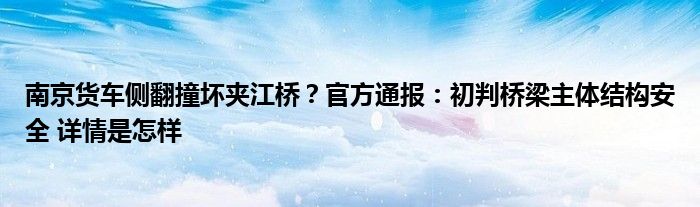 【南京货车侧翻撞坏夹江桥?官方通报:初判桥梁主体结构安全】大家可以一起来了解一下这是什么情况!