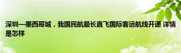 【深圳—墨西哥城,我国民航最长直飞国际客运航线开通】大家可以一起来了解一下这是什么情况!