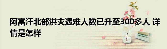 【阿富汗北部洪灾遇难人数已升至300多人】大家可以一起来了解一下这是什么情况!