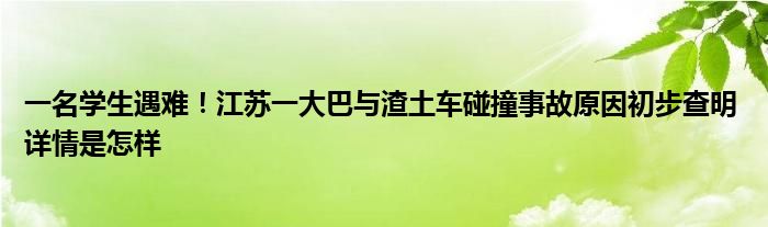 【一名学生遇难!江苏一大巴与渣土车碰撞事故原因初步查明】大家可以一起来了解一下这是什么情况!