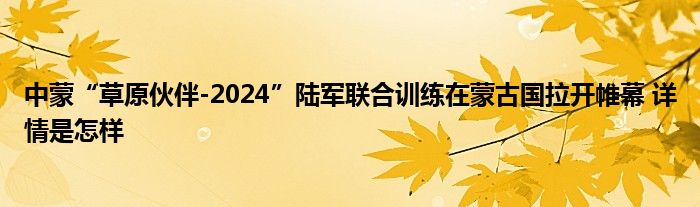 中蒙“草原伙伴-2024”陆军联合训练在蒙古国拉开帷幕 详情是怎样