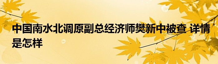 【中国南水北调原副总经济师樊新中被查】大家可以一起来了解一下这是什么情况!