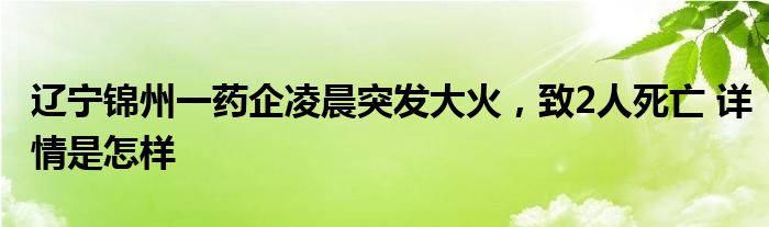 【辽宁锦州一药企凌晨突发大火,致2人死亡】大家可以一起来了解一下这是什么情况!