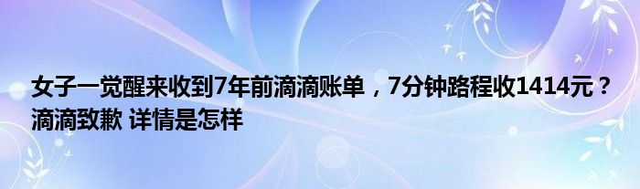 【女子一觉醒来收到7年前滴滴账单,7分钟路程收1414元?滴滴致歉】大家可以一起来了解一下这是什么情况!