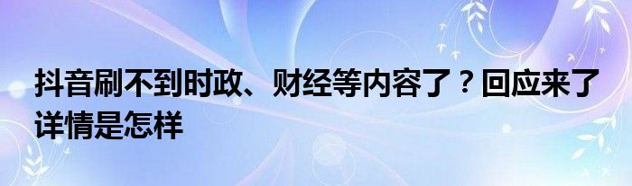 【抖音刷不到时政、财经等内容了?回应来了】大家可以一起来了解一下这是什么情况!