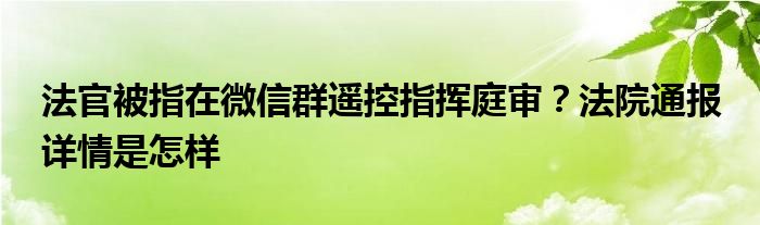 【法官被指在微信群遥控指挥庭审?法院通报】大家可以一起来了解一下这是什么情况!
