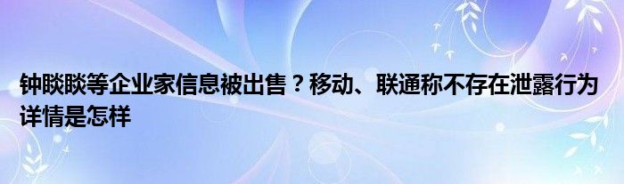 【钟睒睒等企业家信息被出售?移动、联通称不存在泄露行为】大家可以一起来了解一下这是什么情况!