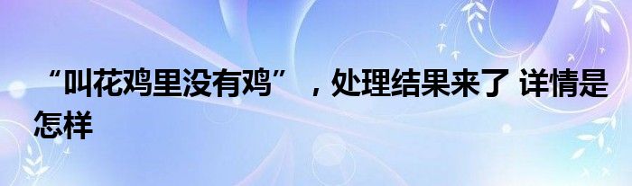 【“叫花鸡里没有鸡”,处理结果来了】大家可以一起来了解一下这是什么情况!