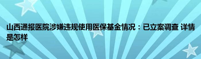 山西通报医院涉嫌违规使用医保基金情况:已立案调查 详情是怎样