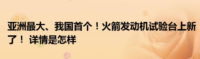 【亚洲最大、我国首个!火箭发动机试验台上新了!】大家可以一起来了解一下这是什么情况!