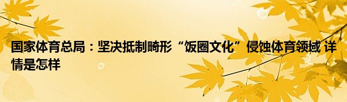 国家体育总局:坚决抵制畸形“饭圈文化”侵蚀体育领域 详情是怎样