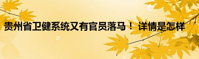 【贵州省卫健系统又有官员落马!】大家可以一起来了解一下这是什么情况!