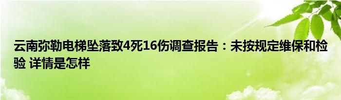 【云南弥勒电梯坠落致4死16伤调查报告:未按规定维保和检验】大家可以一起来了解一下这是什么情况!
