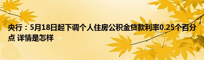 【央行:5月18日起下调个人住房公积金贷款利率0.25个百分点】大家可以一起来了解一下这是什么情况!