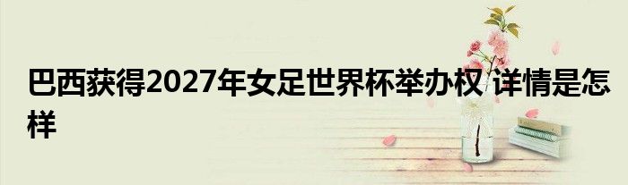 【巴西获得2027年女足世界杯举办权】大家可以一起来了解一下这是什么情况!