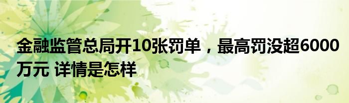 【金融监管总局开10张罚单,最高罚没超6000万元】大家可以一起来了解一下这是什么情况!