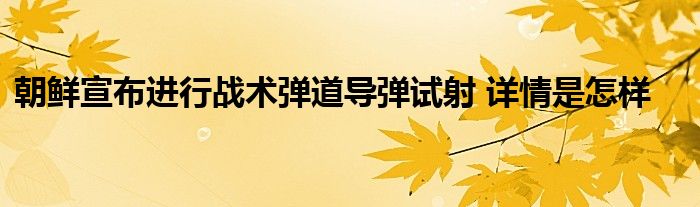【朝鲜宣布进行战术弹道导弹试射】大家可以一起来了解一下这是什么情况!