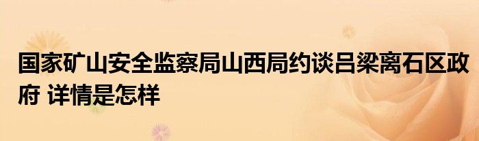 【国家矿山安全监察局山西局约谈吕梁离石区政府】大家可以一起来了解一下这是什么情况!