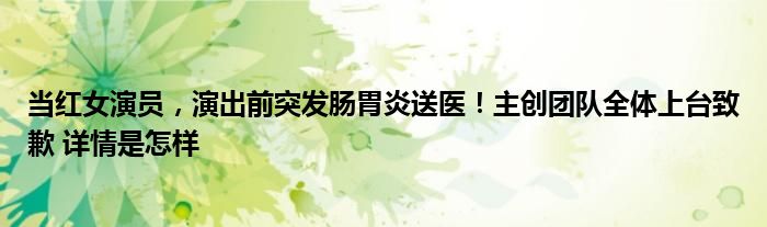 【当红女演员,演出前突发肠胃炎送医!主创团队全体上台致歉】大家可以一起来了解一下这是什么情况!