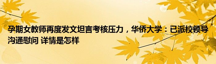 孕期女教师再度发文坦言考核压力,华侨大学:已派校领导沟通慰问 详情是怎样