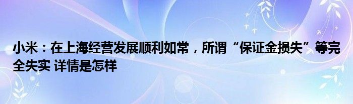 【小米:在上海经营发展顺利如常,所谓“保证金损失”等完全失实】大家可以一起来了解一下这是什么情况!