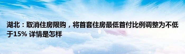 【湖北:取消住房限购,将首套住房最低首付比例调整为不低于15%】大家可以一起来了解一下这是什么情况!