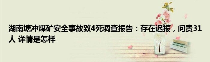 【湖南塘冲煤矿安全事故致4死调查报告:存在迟报,问责31人】大家可以一起来了解一下这是什么情况!