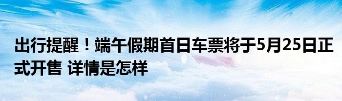【出行提醒!端午假期首日车票将于5月25日正式开售】大家可以一起来了解一下这是什么情况!
