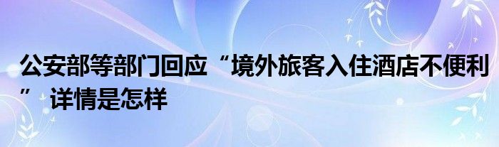 【公安部等部门回应“境外旅客入住酒店不便利”】大家可以一起来了解一下这是什么情况!