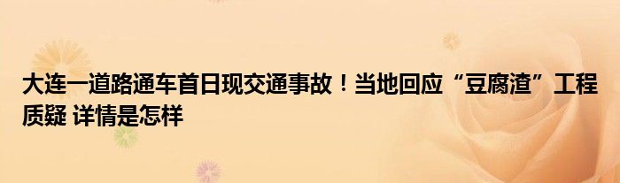【大连一道路通车首日现交通事故!当地回应“豆腐渣”工程质疑】大家可以一起来了解一下这是什么情况!