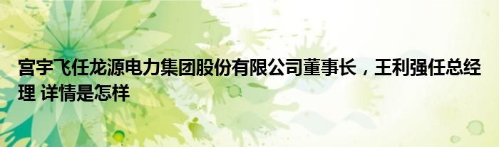 宫宇飞任龙源电力集团股份有限公司董事长,王利强任总经理 详情是怎样
