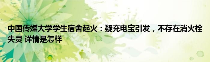 【中国传媒大学学生宿舍起火:疑充电宝引发,不存在消火栓失灵】大家可以一起来了解一下这是什么情况!