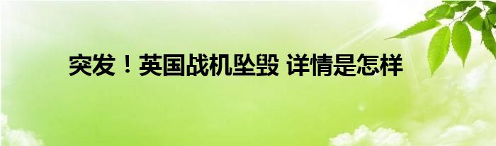 【突发!英国战机坠毁】大家可以一起来了解一下这是什么情况!