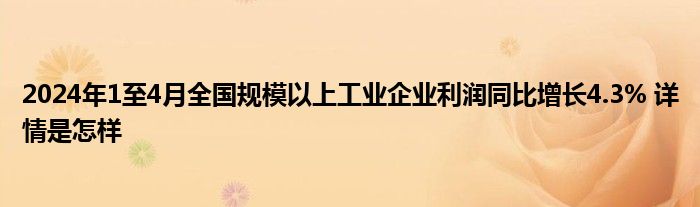 【2024年1至4月全国规模以上工业企业利润同比增长4.3%】大家可以一起来了解一下这是什么情况!