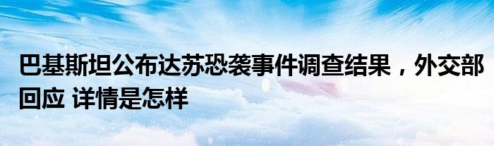 【巴基斯坦公布达苏恐袭事件调查结果,外交部回应】大家可以一起来了解一下这是什么情况!