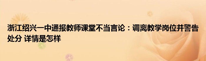 【浙江绍兴一中通报教师课堂不当言论:调离教学岗位并警告处分】大家可以一起来了解一下这是什么情况!