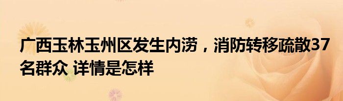 【广西玉林玉州区发生内涝,消防转移疏散37名群众】大家可以一起来了解一下这是什么情况!