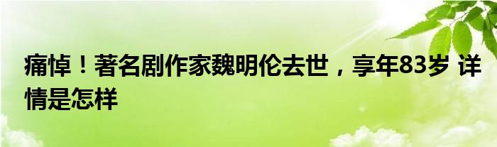 【痛悼!著名剧作家魏明伦去世,享年83岁】大家可以一起来了解一下这是什么情况!