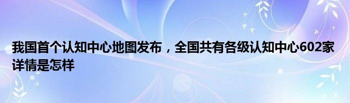 【我国首个认知中心地图发布,全国共有各级认知中心602家】大家可以一起来了解一下这是什么情况!