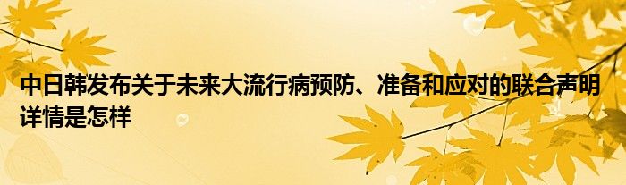 【中日韩发布关于未来大流行病预防、准备和应对的联合声明】大家可以一起来了解一下这是什么情况!