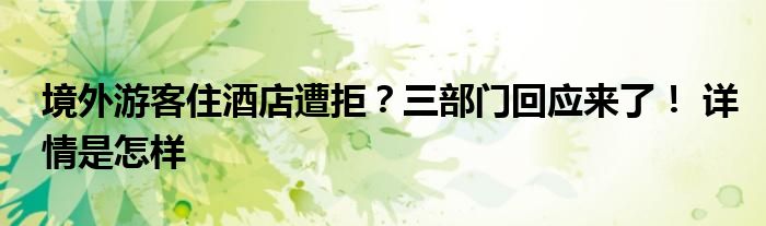 【境外游客住酒店遭拒?三部门回应来了!】大家可以一起来了解一下这是什么情况!