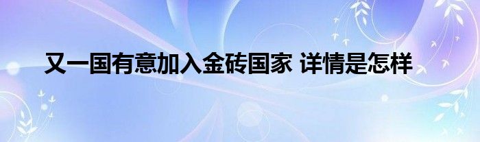 【又一国有意加入金砖国家】大家可以一起来了解一下这是什么情况!