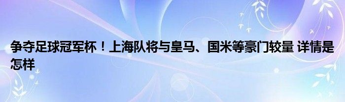 争夺足球冠军杯!上海队将与皇马、国米等豪门较量 详情是怎样