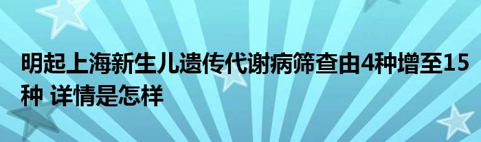 【明起上海新生儿遗传代谢病筛查由4种增至15种】大家可以一起来了解一下这是什么情况!