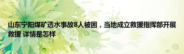 【山东宁阳煤矿透水事故8人被困,当地成立救援指挥部开展救援】大家可以一起来了解一下这是什么情况!