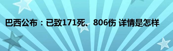 【巴西公布:已致171死、806伤】大家可以一起来了解一下这是什么情况!