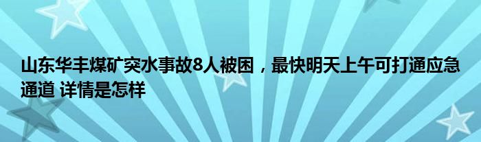 【山东华丰煤矿突水事故8人被困,最快明天上午可打通应急通道】大家可以一起来了解一下这是什么情况!