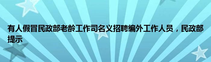 有人假冒民政部老龄工作司名义招聘编外工作人员,民政部提示
