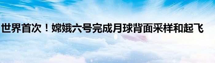 世界首次!嫦娥六号完成月球背面采样和起飞